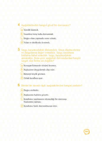 4 Aşağıdakilerden hangisi güzel bir davranıştır?