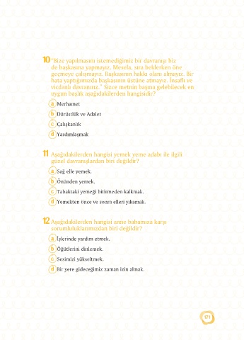 11 Aşağıdakilerden hangisi yemek yeme adabı ile ilgili