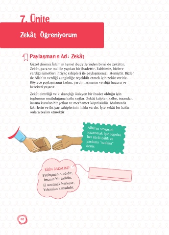 toplumun mutluluğuna katkı sağlar. Zekât kalpten kalbe, insandan